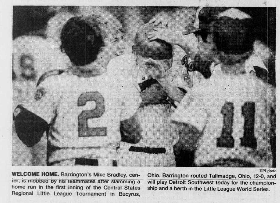 Beating Detroit Southwest for the regional title to go to the LLWS was a lot tougher but Barrington came back and then hung on for a 7-6 victory to improve to 16-2. Bradley had a 2-run single and Paul Kamhout an RBI single in a 3-run third to erase a 3-2 deficit. Bradley also pitched the last 4 innings and Detroit made it a bit dicey with 2 runs in the sixth and final inning.