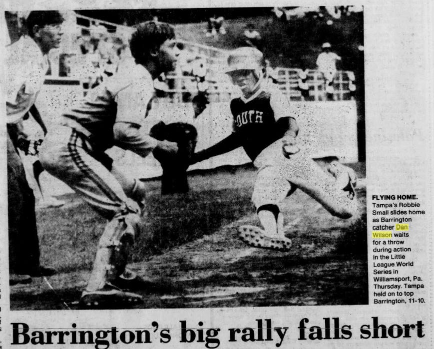 Wilson was the pitching and catching star of the 1981 Barrington team that reached the Little League World Series. A team coached by his father Stan that came thisclose to playing in the championship game before finishing in third place.